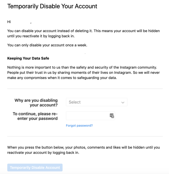 Note: After 30 days, your deactivated account will become permanently deleted.